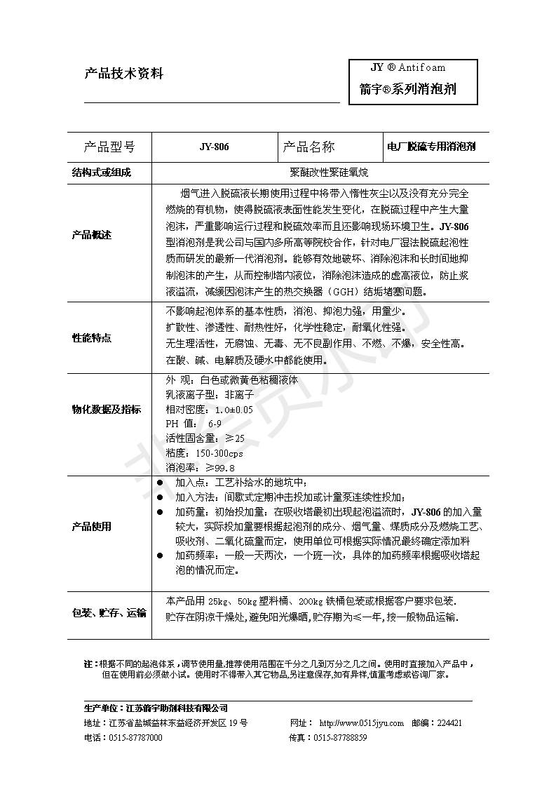 電廠水處理有機(jī)硅型消泡劑JY-806